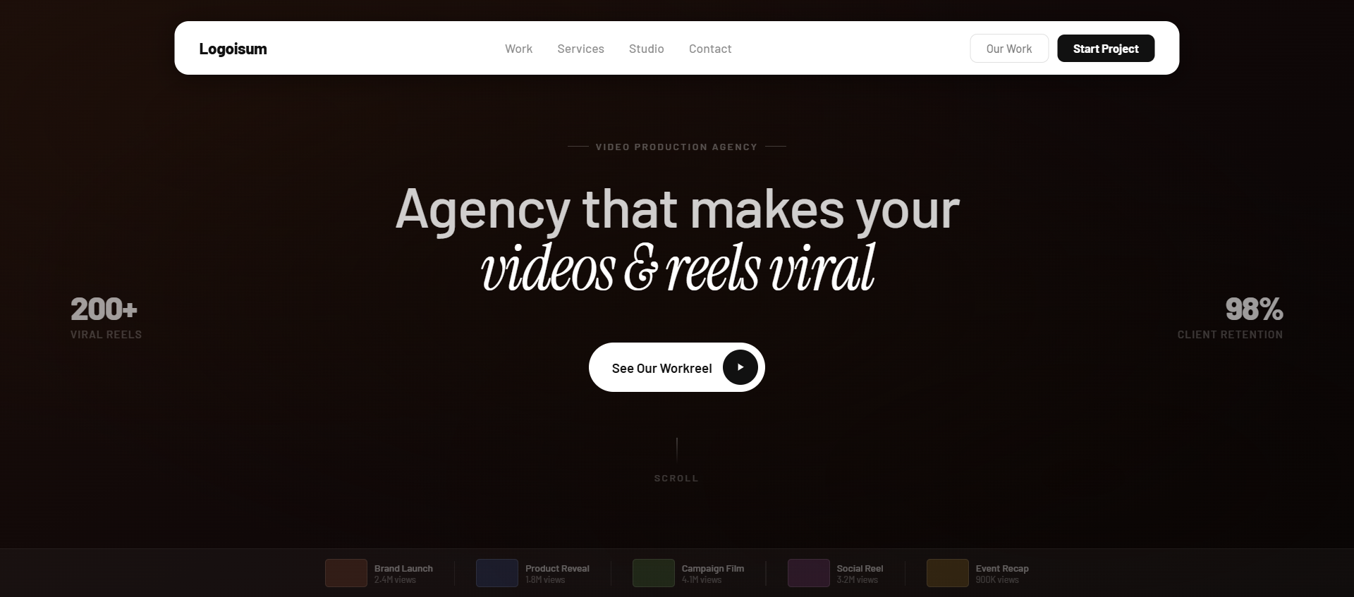 - Headline — "Agency that makes your / videos & reels viral" — keep the two-font structure
