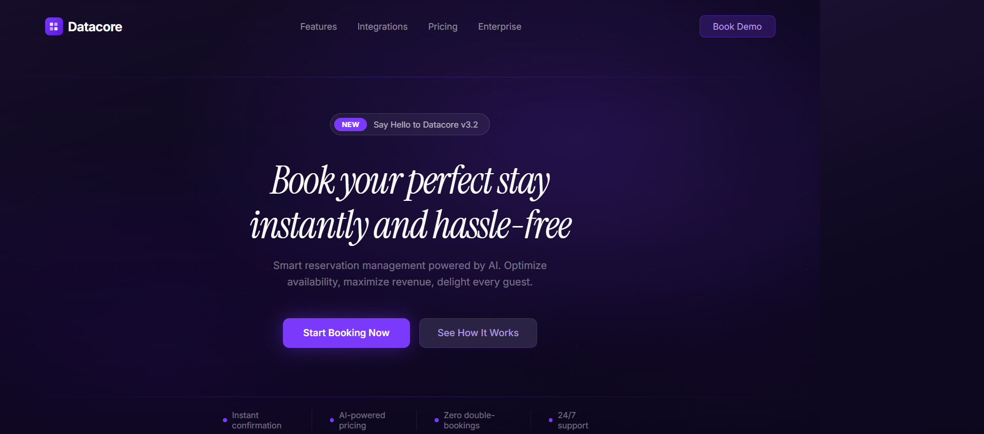Use for booking platforms, travel apps, hospitality SaaS, or any product with a purple brand identity.
